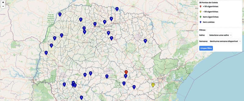 O site exibe um mapa interativo com a localização das armadilhas adesivas instaladas nas regiões do Paraná e o número de insetos capturados em cada uma, com atualizações semanais. A plataforma consolida e torna públicos dados que antes ficavam restritos a produtores ou instituições individuais.