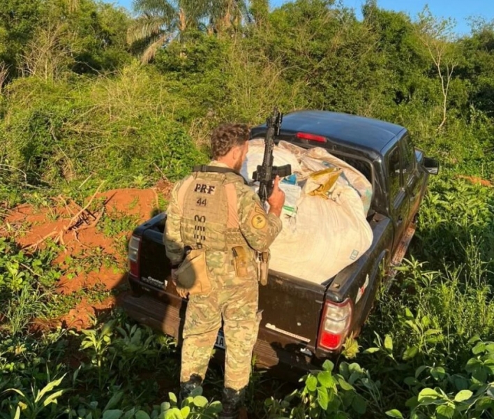 Os policiais tentaram fazer a abordagem, mas o motorista fugiu. Ele seguiu por estradas estaduais e rurais até entrar em uma lavoura, onde abandonou a caminhonete e escapou a pé pela mata.