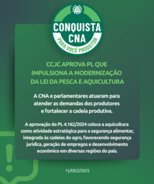 Na avaliação da CNA, a aprovação do projeto não é apenas uma vitória legislativa, mas um passo concreto rumo a um marco legal mais moderno, que favorece a expansão da aquicultura brasileira como atividade sustentável, integrada às cadeias do agro e promotora de desenvolvimento econômico em múltiplas regiões do país.