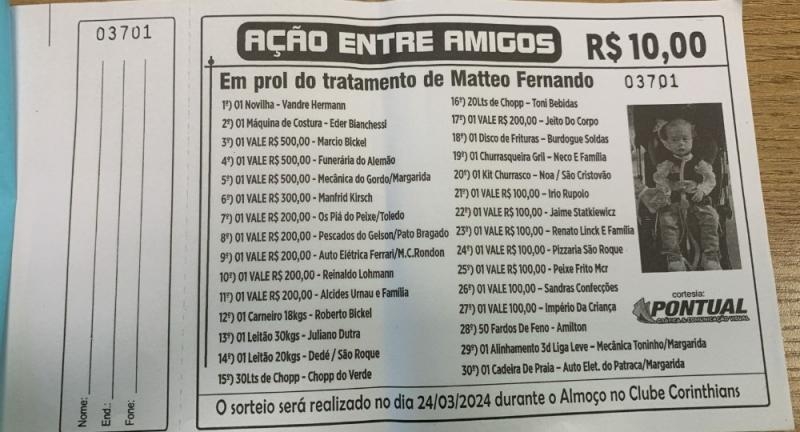 Além do almoço, a família do pequeno Matteo também está promovendo uma ação entre amigos.